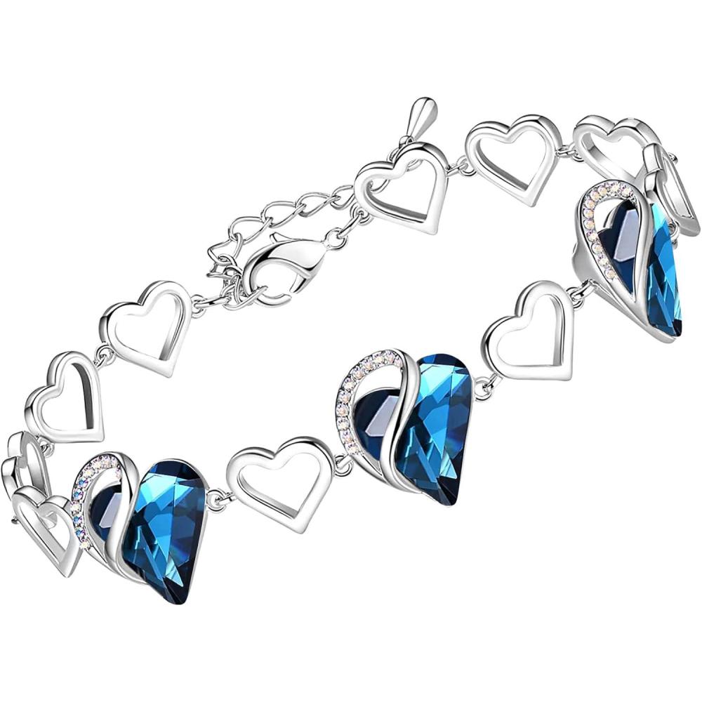 Leafael Infinity Love Heart Link Bracelets, Birthstone or Healing Stone Crystal Bracelet for Women, Silver Tone Jewelry Gifts for Her, 7-inch Chain and 2-inch Extender(09a-September-Bermuda Sapphire Blue)