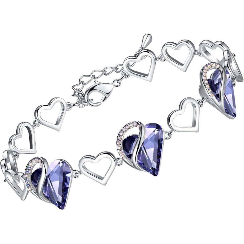 Leafael Infinity Love Heart Link Bracelets, Birthstone or Healing Stone Crystal Bracelet for Women, Silver Tone Jewelry Gifts for Her, 7-inch Chain and 2-inch Extender(02b-February-Tanzanite Purple)
