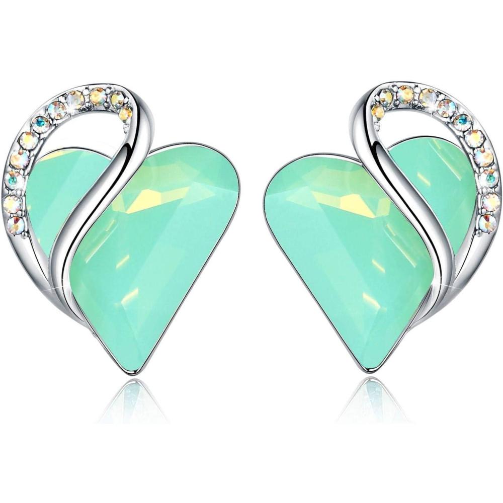 Leafael Infinity love Heart Birthstone Stud Earrings for Women, Valentine’s Day Gifts for Mom, Wife, and Her, Silver Plated Birthday Jewelry(13-Healing Stone for Luck-Jade Opal Green)