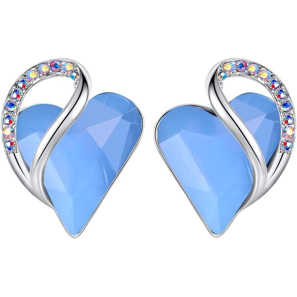 Leafael Infinity love Heart Birthstone Stud Earrings for Women, Valentine’s Day Gifts for Mom, Wife, and Her, Silver Plated Birthday Jewelry(13b-Healing Stone for Communication-Owyhee Opal Blue)