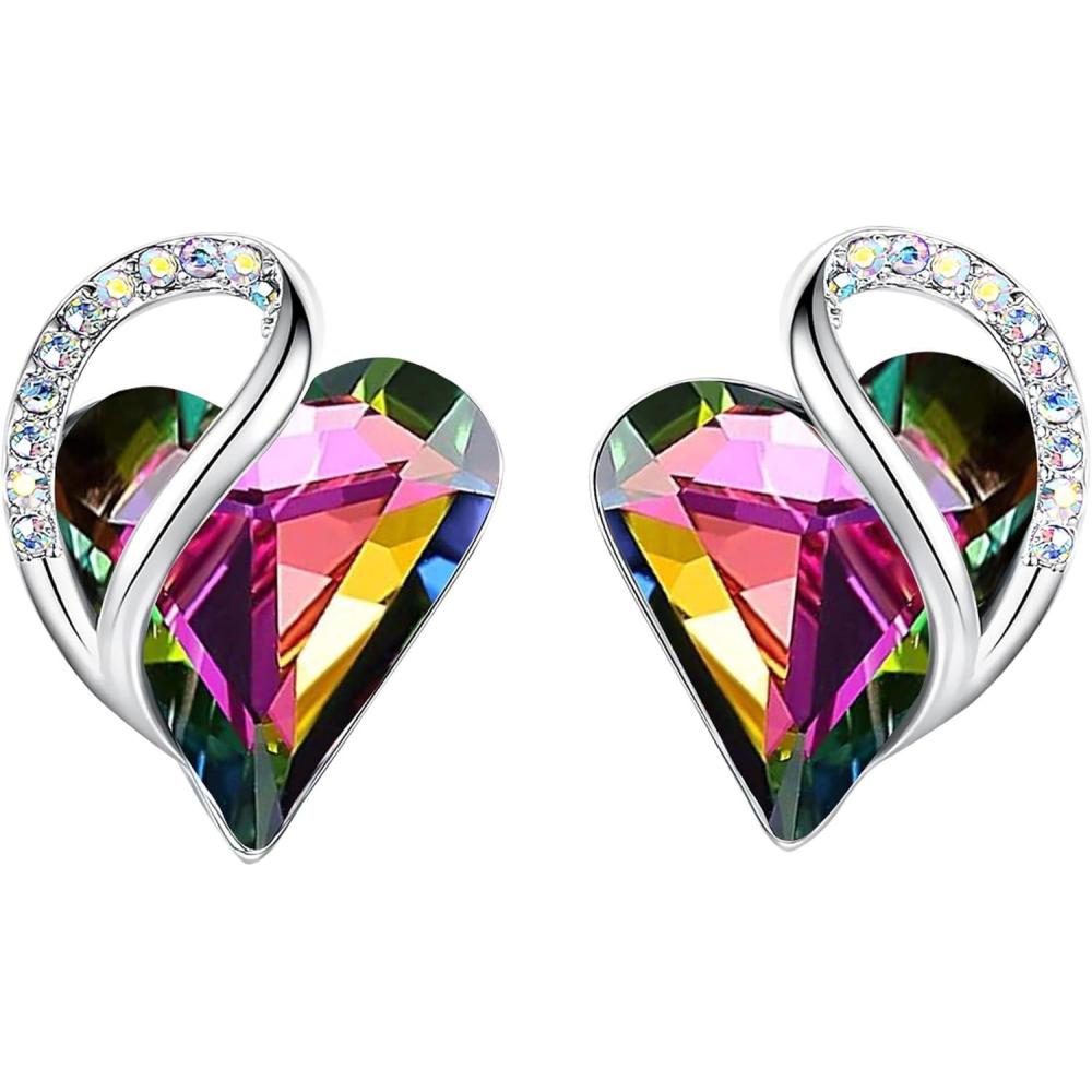Leafael Infinity love Heart Birthstone Stud Earrings for Women, Valentine’s Day Gifts for Mom, Wife, and Her, Silver Plated Birthday Jewelry(14-Healing Stone for Protection-Rainbow Tourmaline Black)