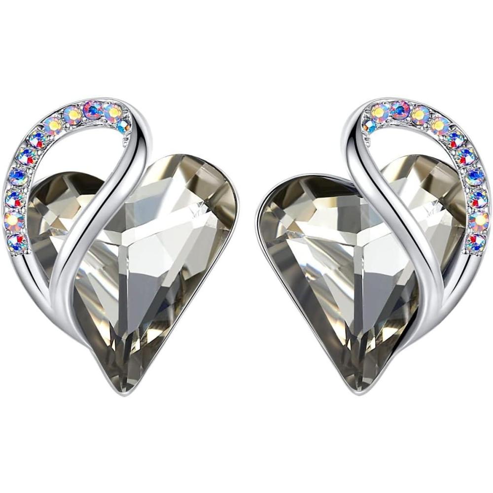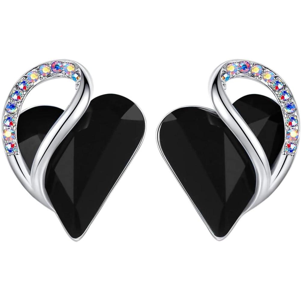Leafael Infinity love Heart Birthstone Stud Earrings for Women, Valentine’s Day Gifts for Mom, Wife, and Her, Silver Plated Birthday Jewelry(14b-Healing Stone for Protection-Clear Black)