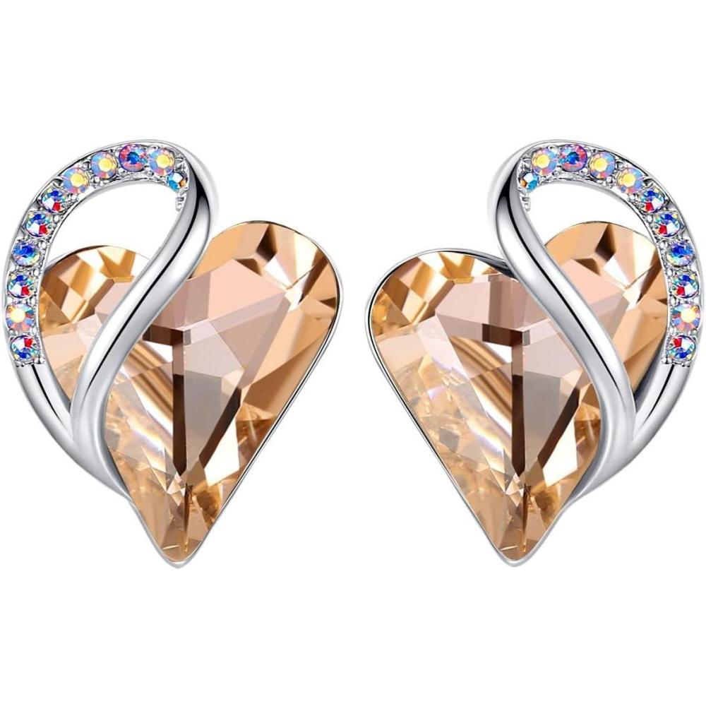 Leafael Infinity love Heart Birthstone Stud Earrings for Women, Valentine’s Day Gifts for Mom, Wife, and Her, Silver Plated Birthday Jewelry(15-Healing Stone for Energy-Carnelian Orange)