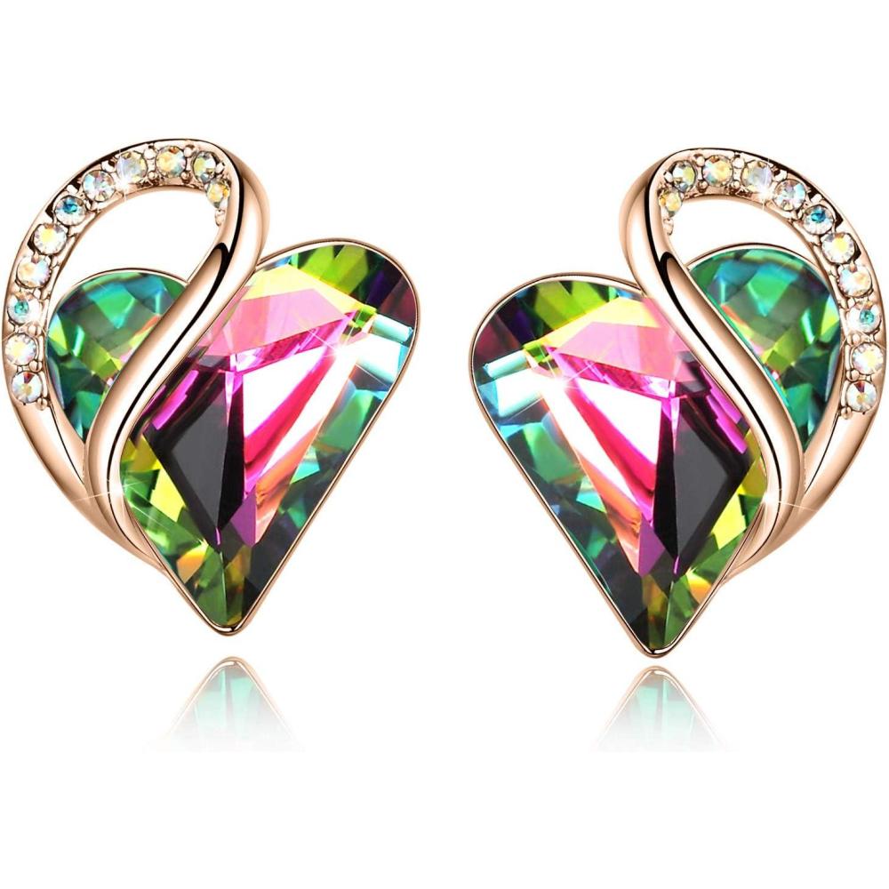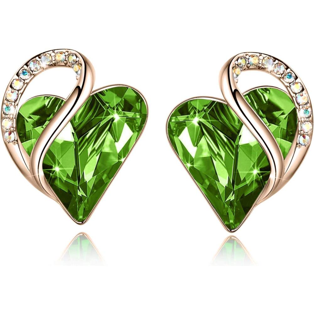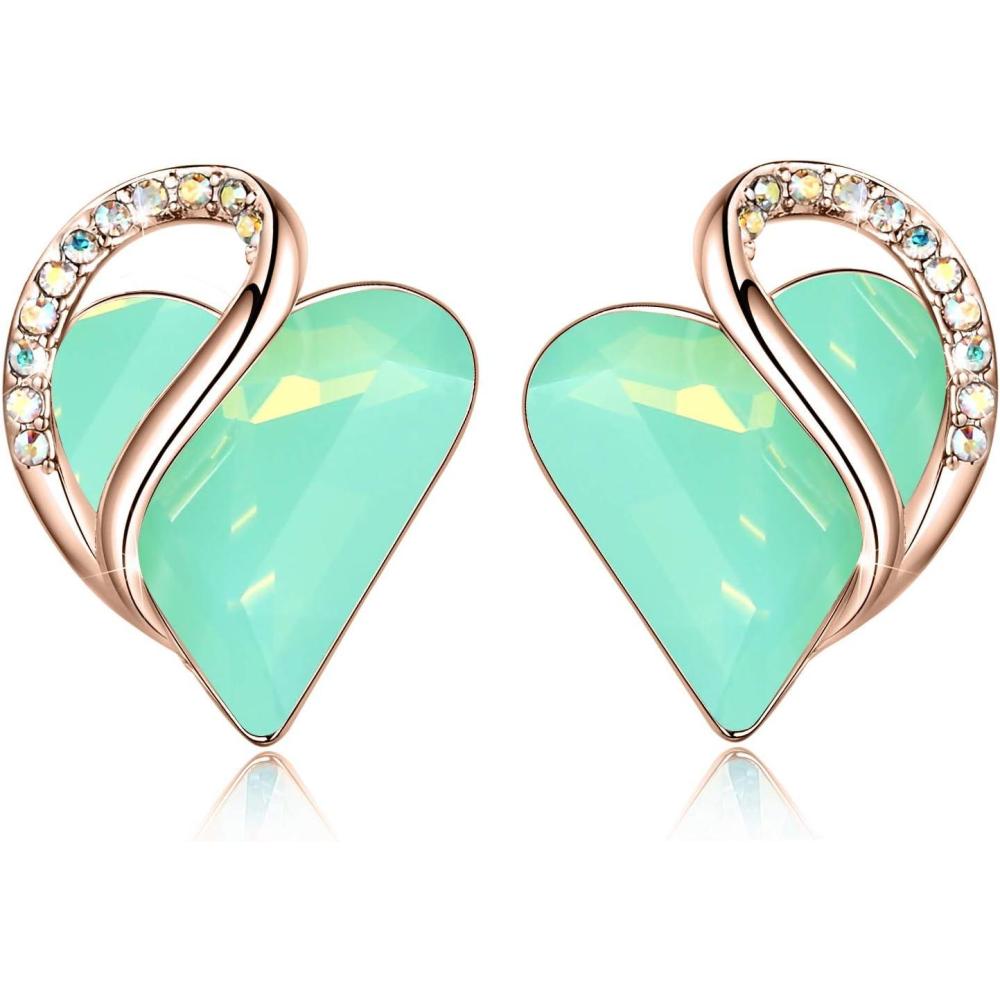 Leafael 18K Rose Gold Plated Love Heart Stud Earrings with Healing Stone Crystal Jewelry Gifts for Women(Luck Healing Stone – Jade Opal Green Crystal)