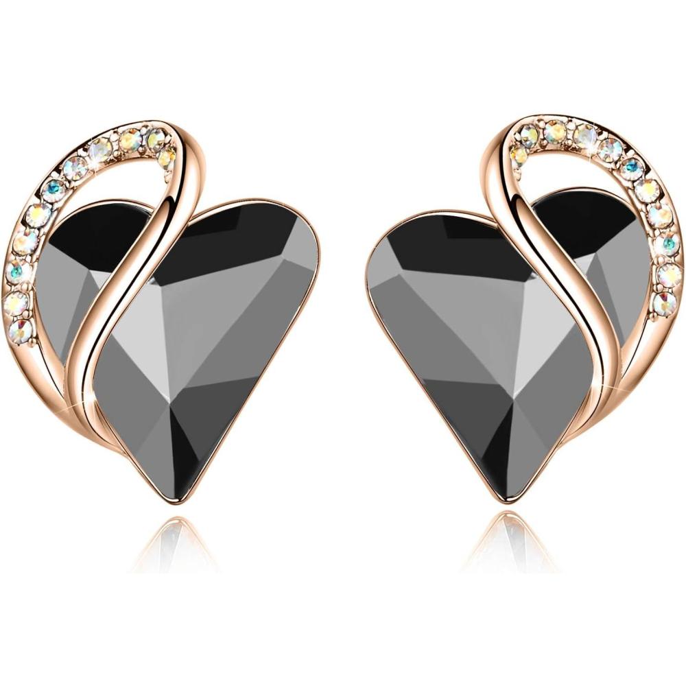 Leafael 18K Rose Gold Plated Love Heart Stud Earrings with Healing Stone Crystal Jewelry Gifts for Women(Protection Healing Stone – Tourmaline Black Crystal)