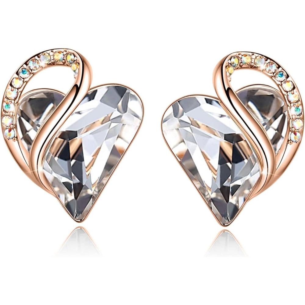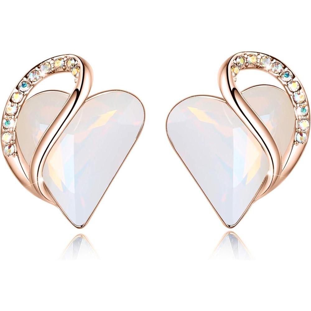 Leafael 18K Rose Gold Plated Love Heart Stud Earrings with Healing Stone Crystal Jewelry Gifts for Women(Transformation Healing Stone – Opal White Crystal)