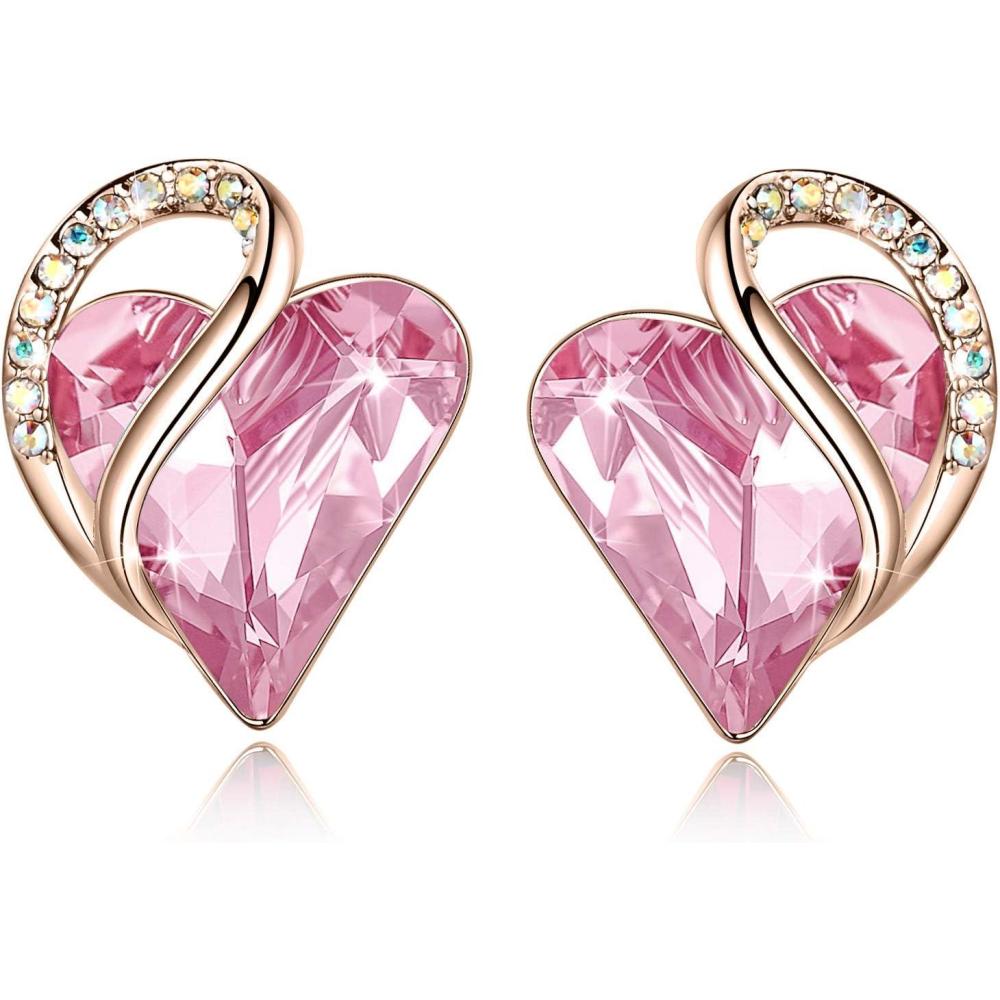 Leafael 18K Rose Gold Plated Love Heart Stud Earrings with Healing Stone Crystal Jewelry Gifts for Women(Romantic Love Healing Stone – Rose Quartz Pink Crystal)