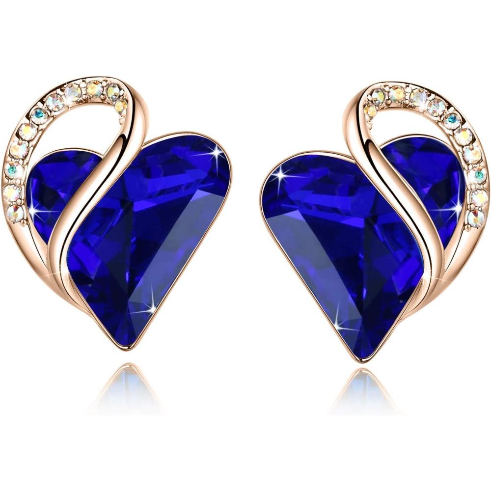 Leafael 18K Rose Gold Plated Love Heart Stud Earrings with Healing Stone Crystal Jewelry Gifts for Women(Protection Healing Stone – Sapphire Blue Crystal)