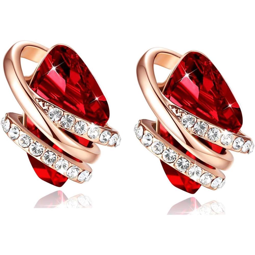 Leafael Wish Stone Stud Earrings with Birthstone Crystals, 18K Rose Gold Plated or Silver-tone(101-January July Birthstone-Ruby Red-Rose Gold Plated)