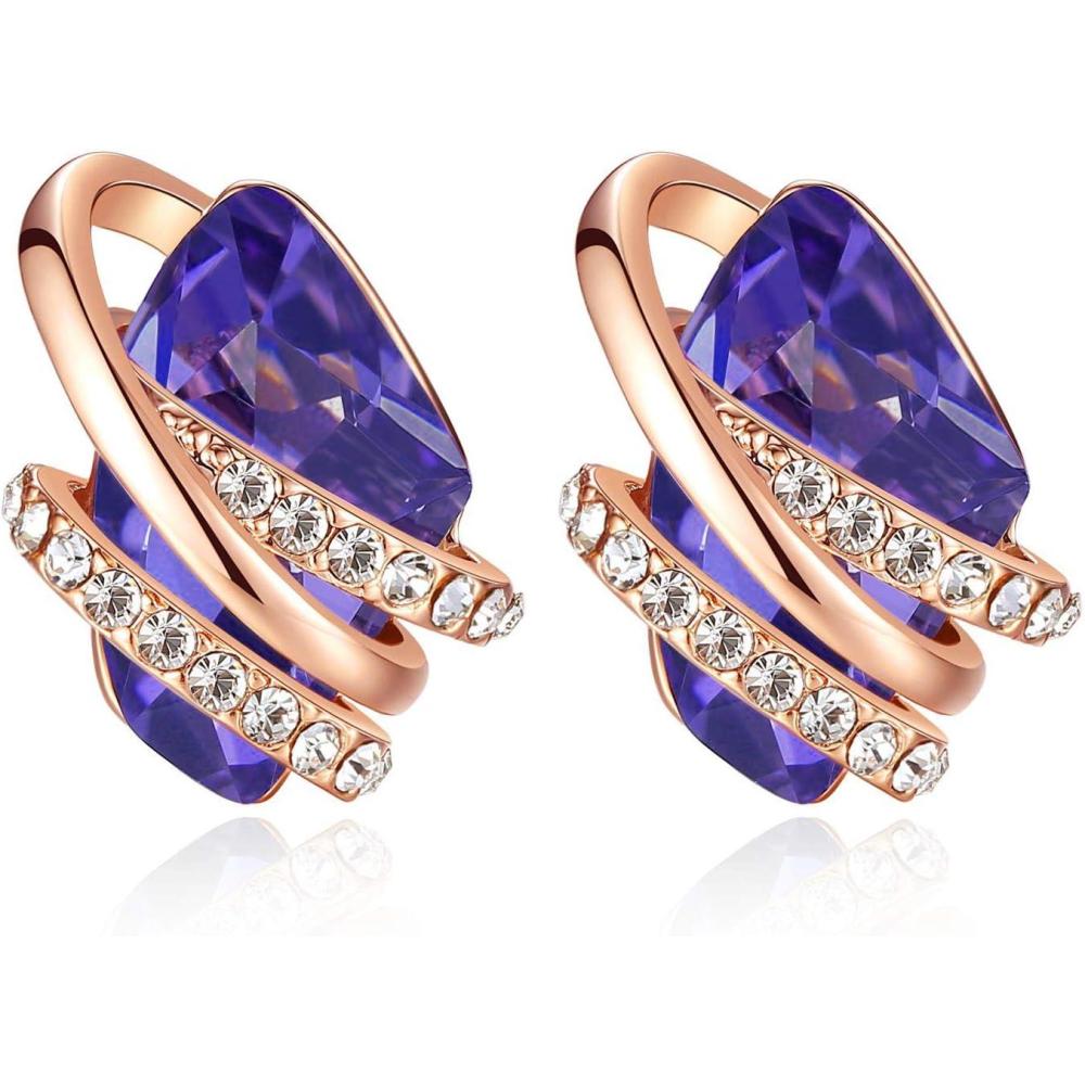 Leafael Wish Stone Stud Earrings with Birthstone Crystals, 18K Rose Gold Plated or Silver-tone(102-February Birthstone-Tanzanite Purple-Rose Gold Plated)
