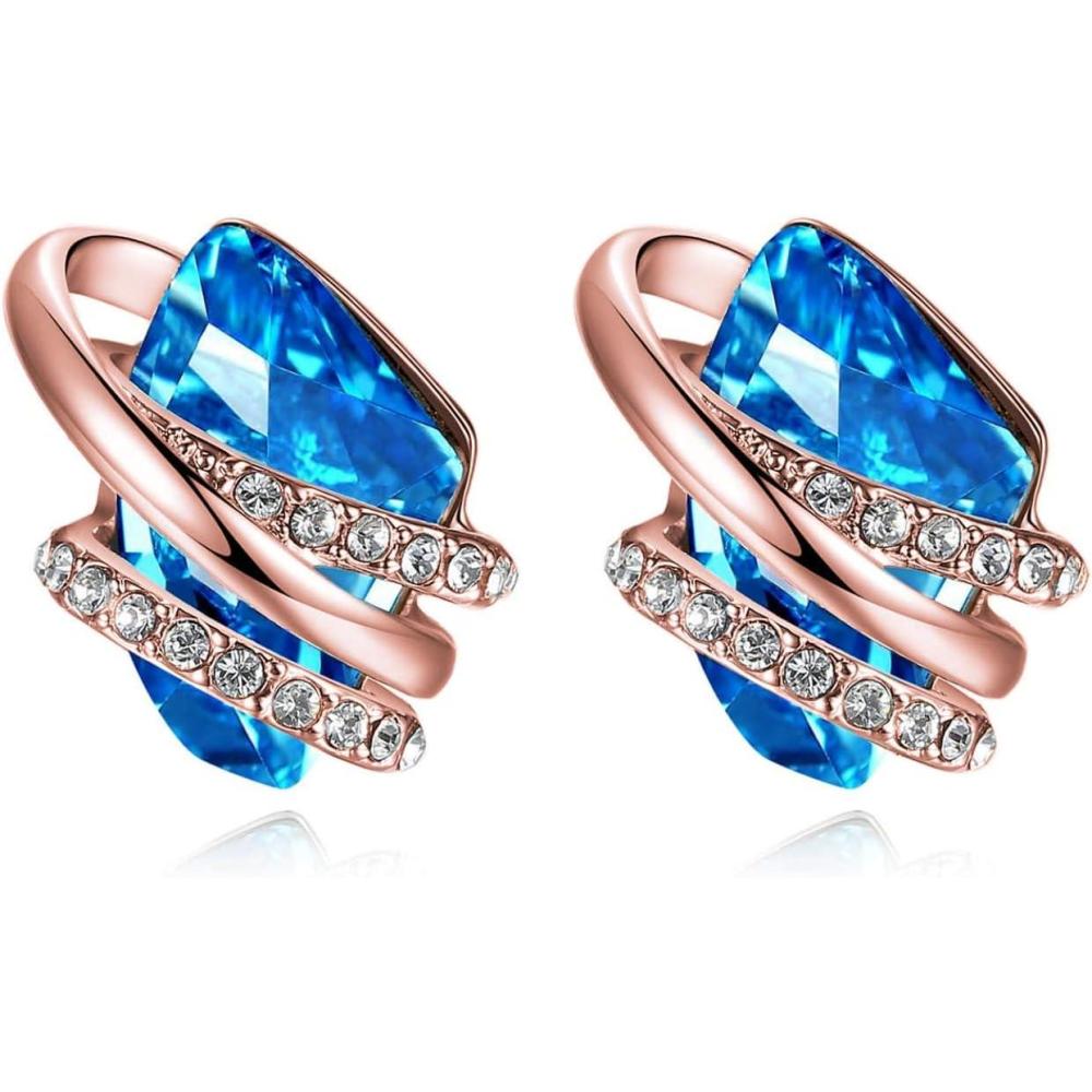 Leafael Wish Stone Stud Earrings with Birthstone Crystals, 18K Rose Gold Plated or Silver-tone(103-March December-Aquamarine Blue-Rose Gold Plated)
