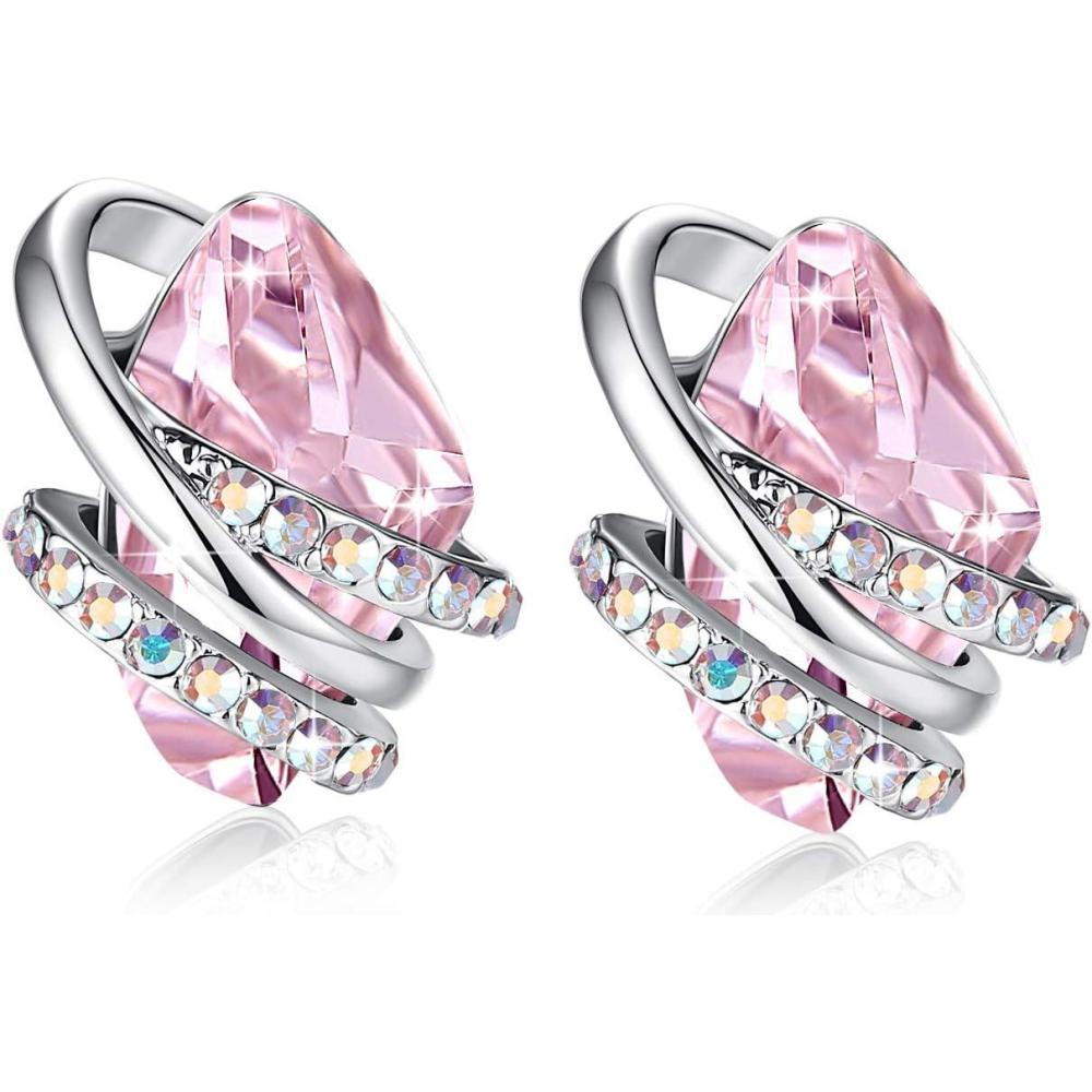 Leafael Wish Stone Stud Earrings with Birthstone Crystals, 18K Rose Gold Plated or Silver-tone(10-October Birthstone-Vintage Pink)