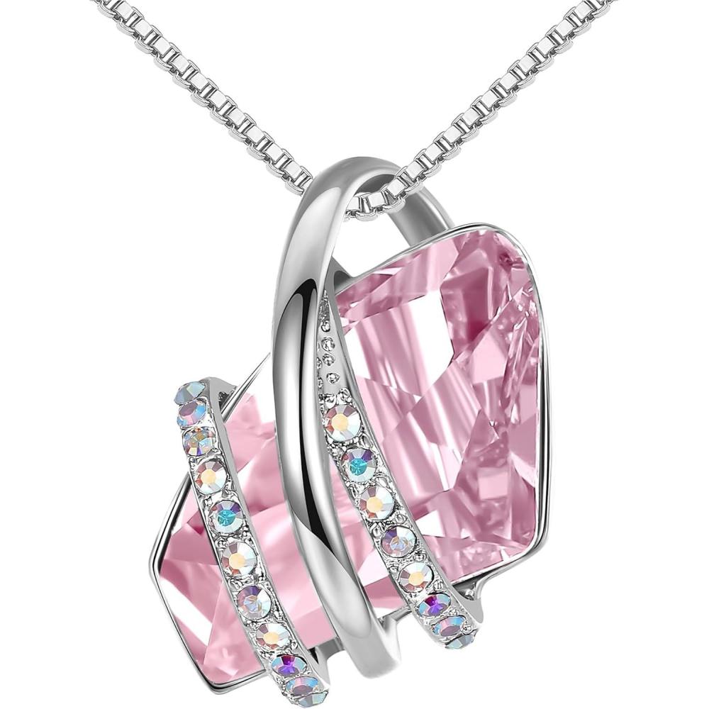 Leafael Wish Stone Pendant Necklace with Birthstone Crystal, 18K Rose Gold Plated/Silvertone, 18″ 2″(10-October Birthstone-Vintage Pink)