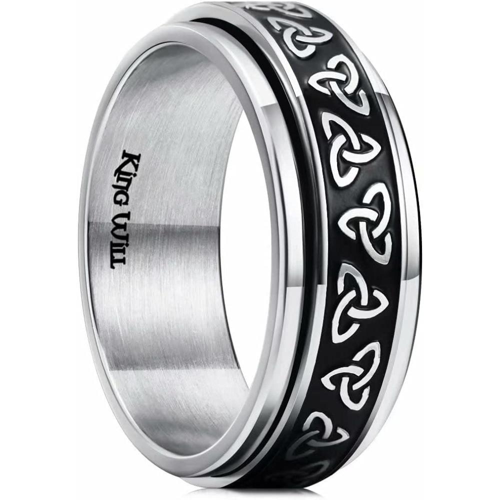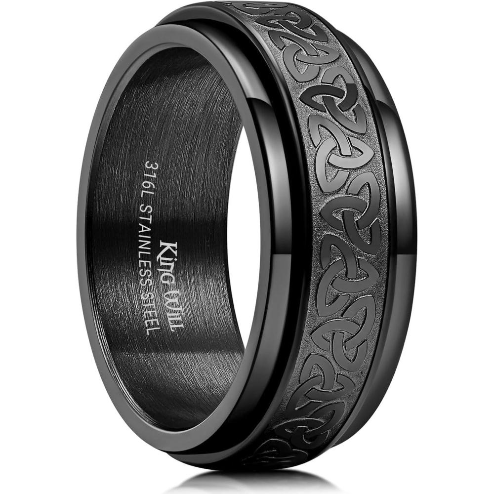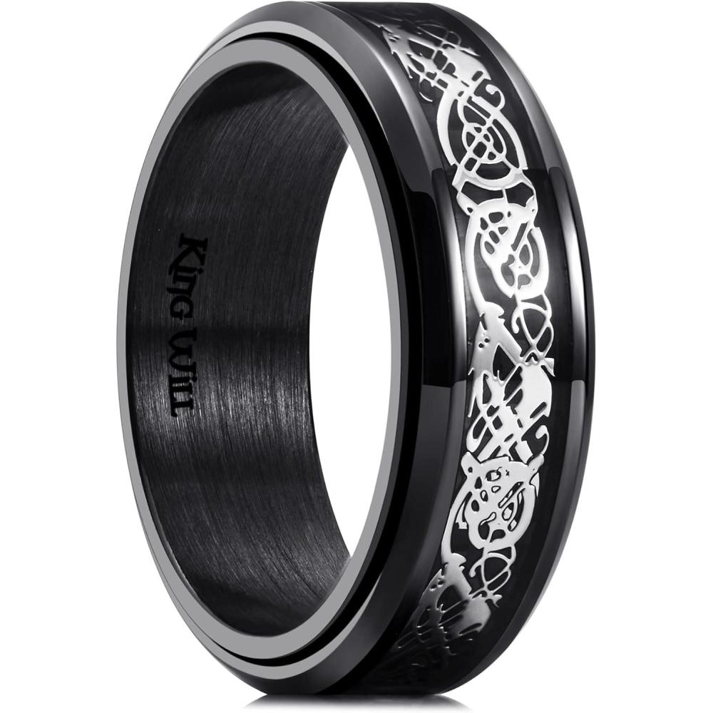 King Will 316L Stainless Steel Spinner Ring for Men Women- 8mm Width Black/Silver Fidget Ring with Dragon/Celtic Knot Pattern, Stress Anxiety Relief Comfort Fit Wedding Band Size 6-14(Black)