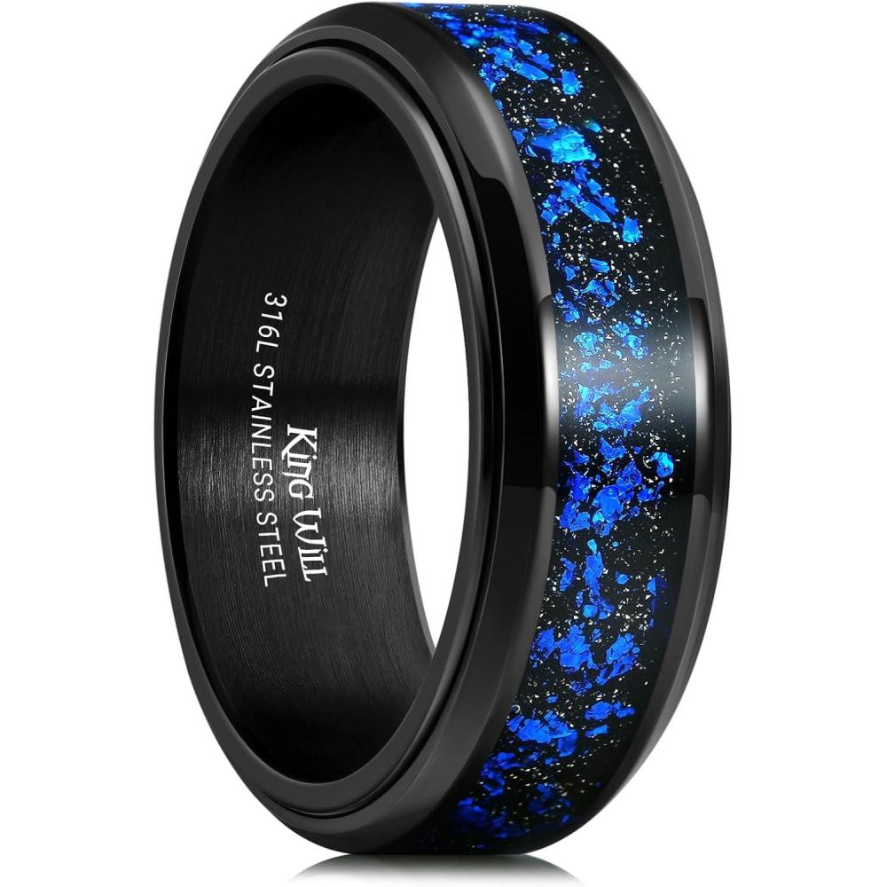 King Will 316L Stainless Steel Spinner Ring for Men-8mm Gear Fidget Spinner Ring in Multicolors, Anxiety Relief and Stress Free Wedding Band Comfort Fit Size 4-14(Black-Blue Gear)