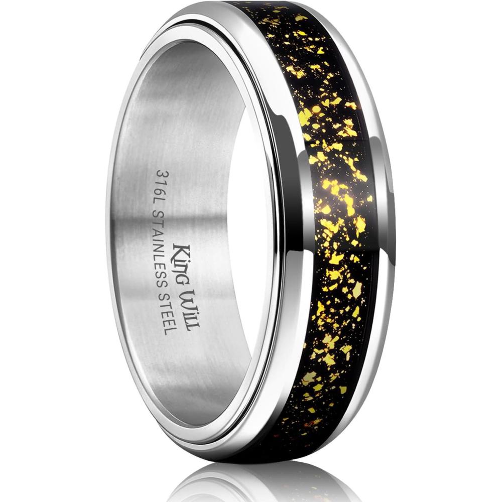 King Will 316L Stainless Steel Spinner Ring for Men-8mm Gear Fidget Spinner Ring in Multicolors, Anxiety Relief and Stress Free Wedding Band Comfort Fit Size 4-14(A-Black-Black Gear)
