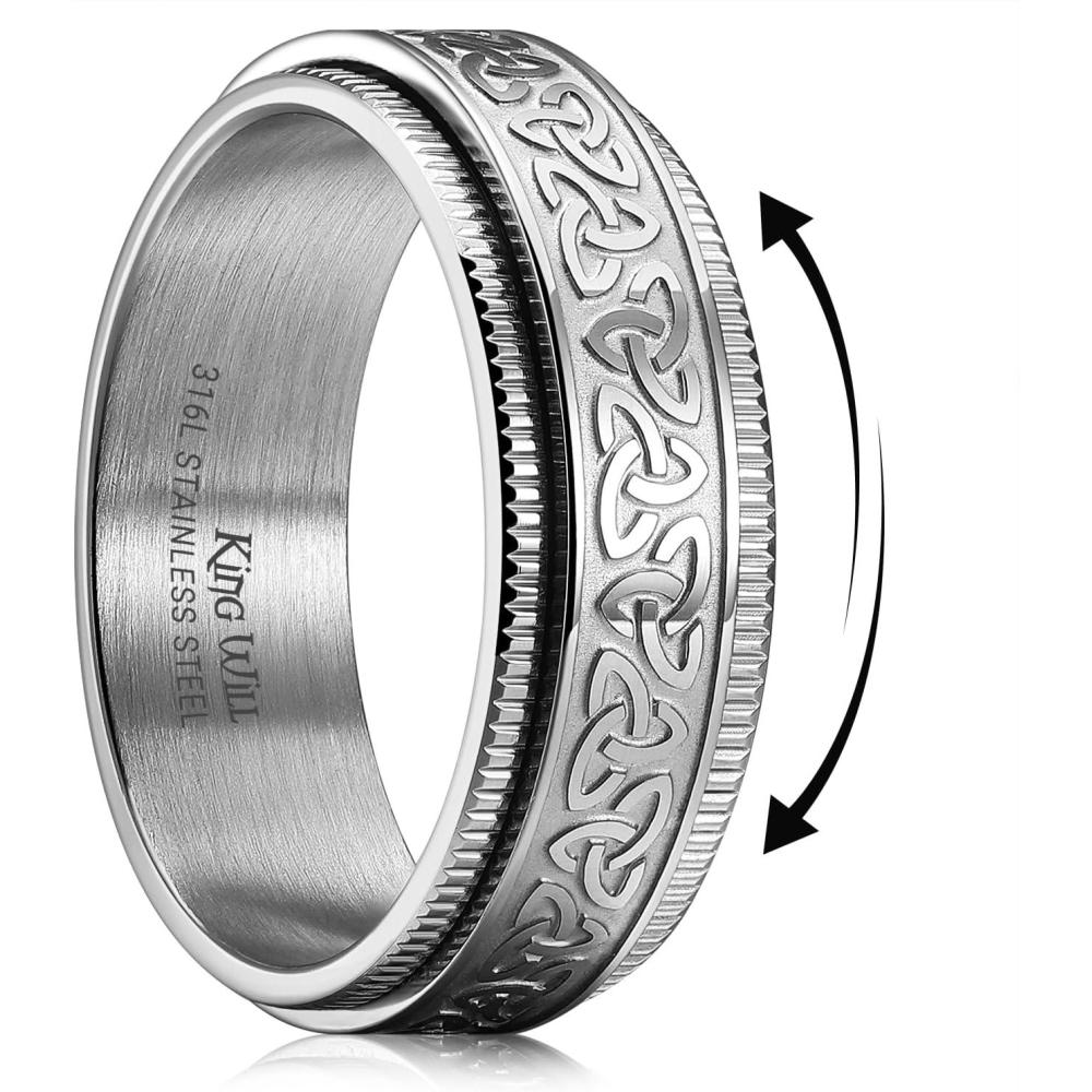 King Will 316L Stainless Steel Spinner Ring for Men Women- 8mm Width Black/Silver Fidget Ring with Dragon/Celtic Knot Pattern, Stress Anxiety Relief Comfort Fit Wedding Band Size 6-14(Silver-All-A)