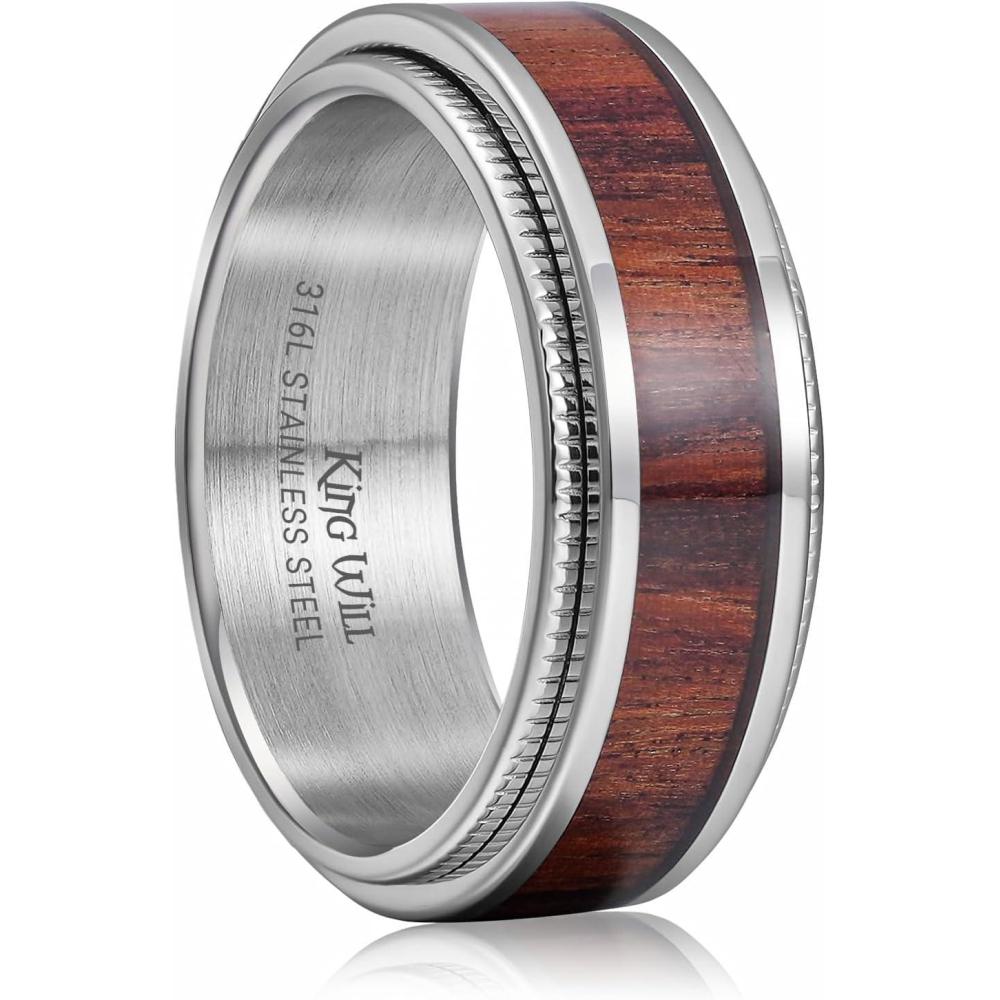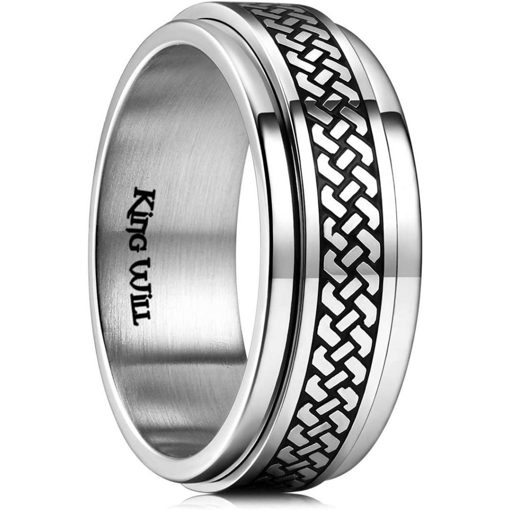 King Will 316L Stainless Steel Spinner Ring for Men Women- 8mm Width Black/Silver Fidget Ring with Dragon/Celtic Knot Pattern, Stress Anxiety Relief Comfort Fit Wedding Band Size 6-14(Silver-Wood)
