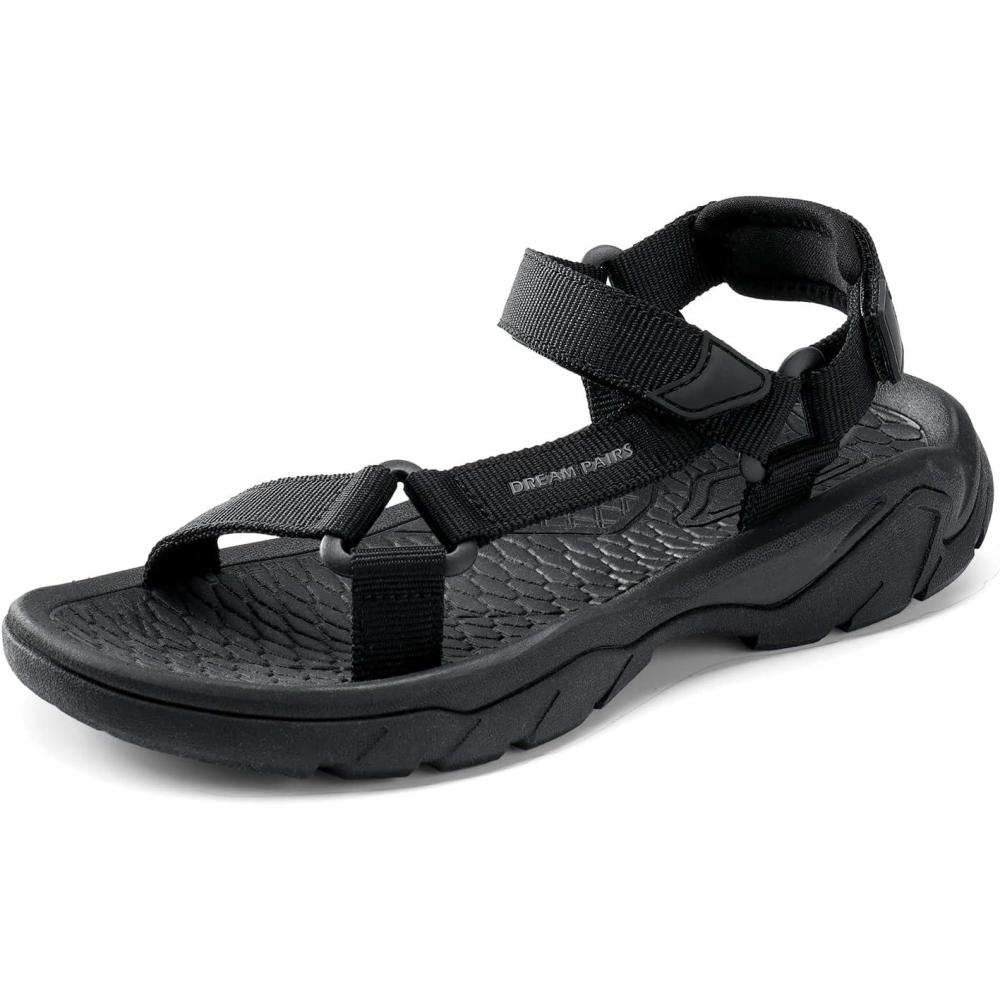 DREAM PAIRS Hiking Sandals Women, Comfortable Walking Sandals With Adjustable Hook And Loop Strap, Quick-Drying Sports Summer Beach Outdoor Light Weight Water Shoes(All Black)