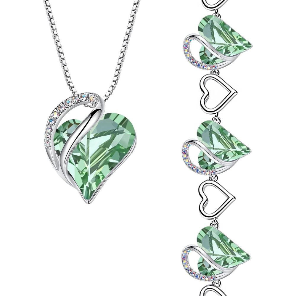 Leafael Infinity Love Heart Necklace and Bracelet for Women, August Birthstone Crystal Jewelry, Silver Tone Bundle Gifts for Women, Light Chrysolite Green