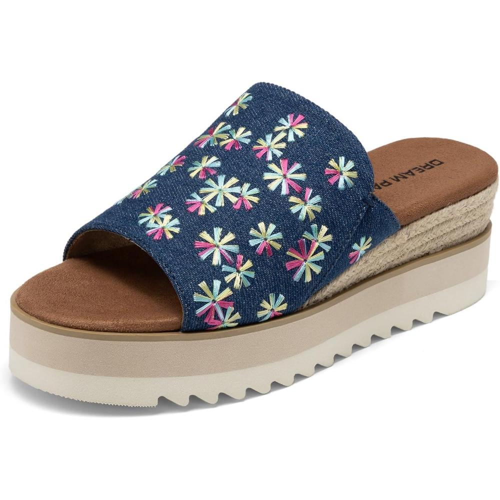 DREAM PAIRS Platform Sandals Women Slip-on Espadrille Bohemia Wedge Sandals, Comfort Dressy Summer Open Toe Canvas Slides for Women’s Outdoor and Beach(Navy Multi)