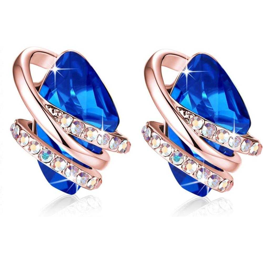 Leafael Wish Stone Stud Earrings with Birthstone Crystals, 18K Rose Gold Plated or Silver-tone(109-September-Sapphire Blue-Rose Gold Plated)