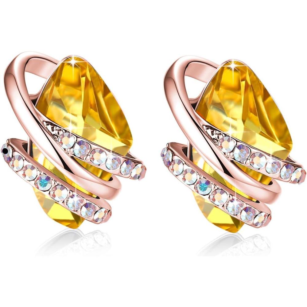 Leafael Wish Stone Stud Earrings with Birthstone Crystals, 18K Rose Gold Plated or Silver-tone(111-November-Citrine Yellow-Rose Gold Plated)
