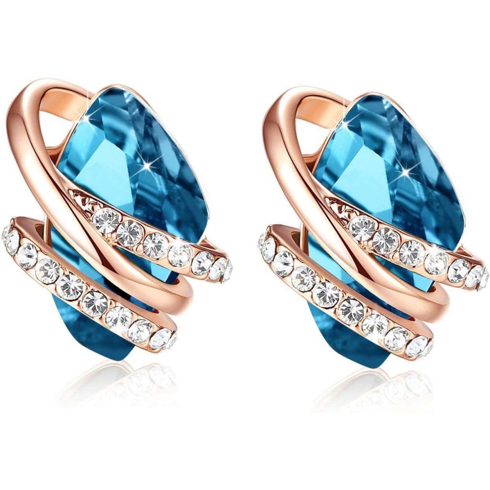 Leafael Wish Stone Stud Earrings with Birthstone Crystals, 18K Rose Gold Plated or Silver-tone(112-December Birthstone-Zircon Blue-Rose Gold Plated)