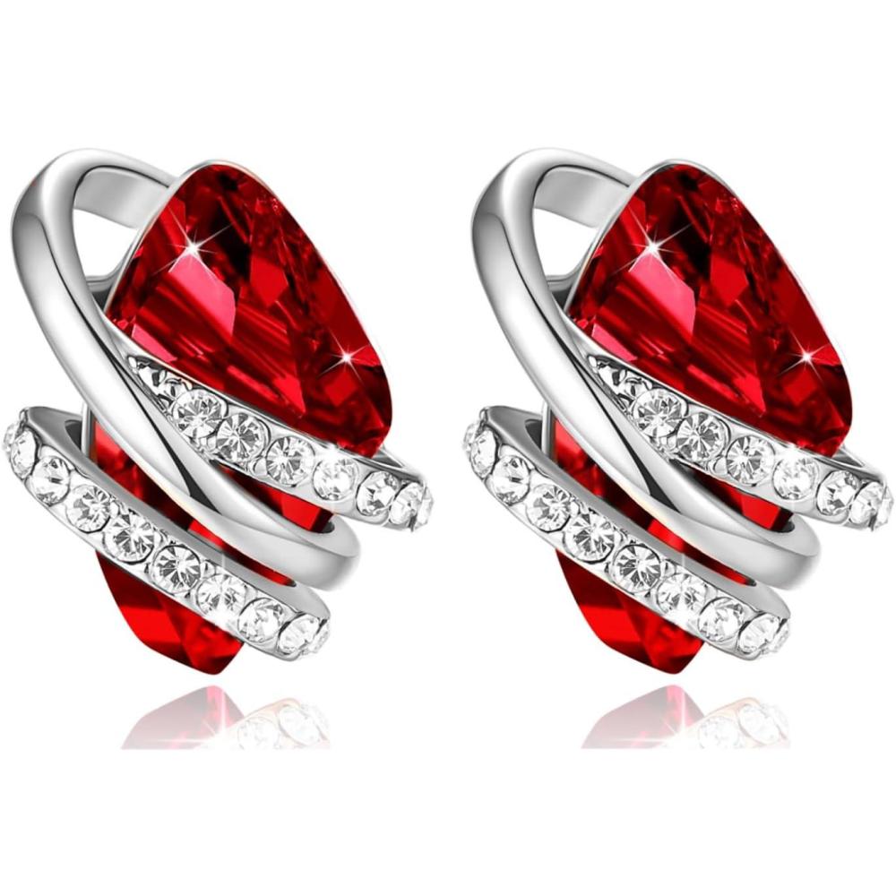 Leafael Wish Stone Stud Earrings with Birthstone Crystals, 18K Rose Gold Plated or Silver-tone(201-January July-Ruby Red-Silvertone)