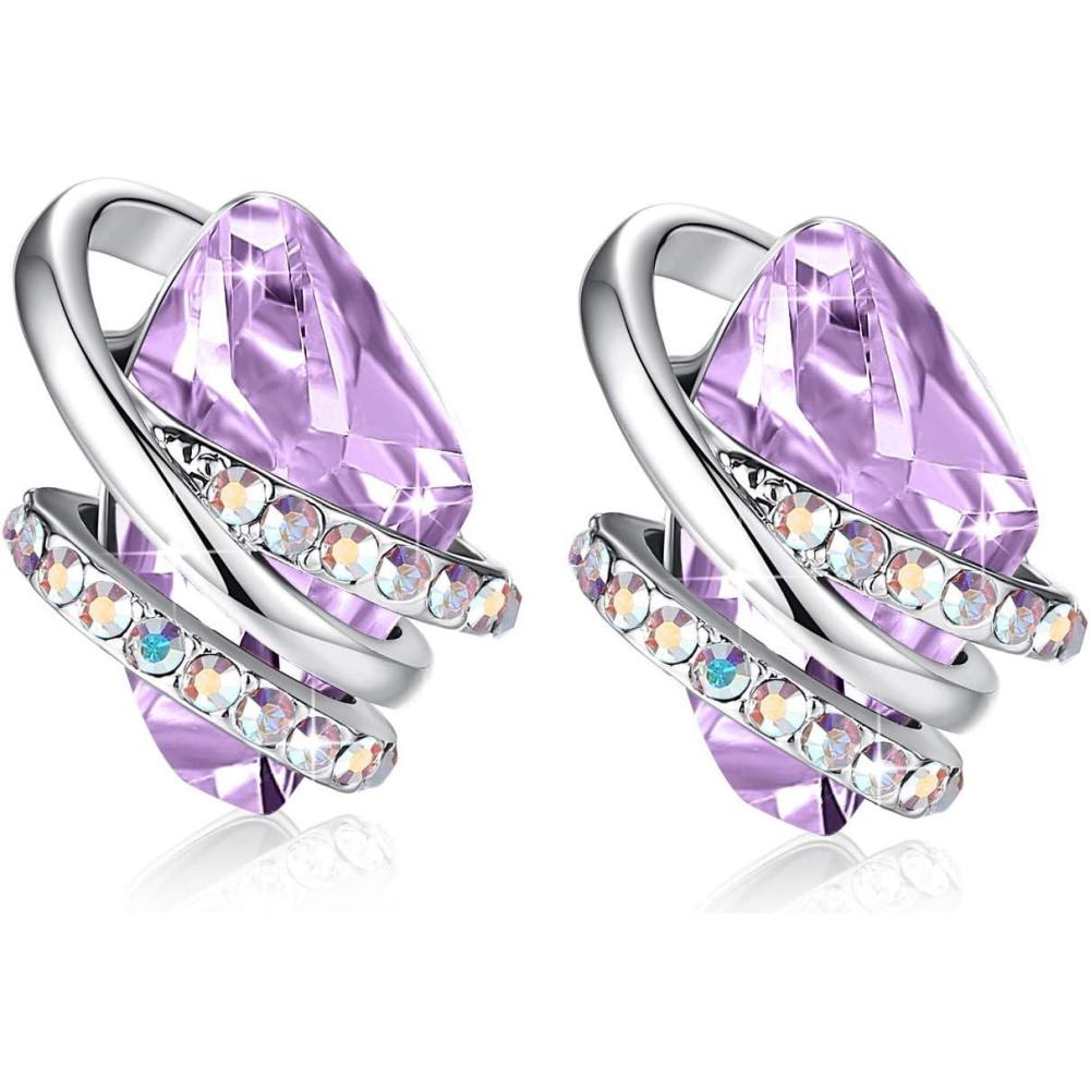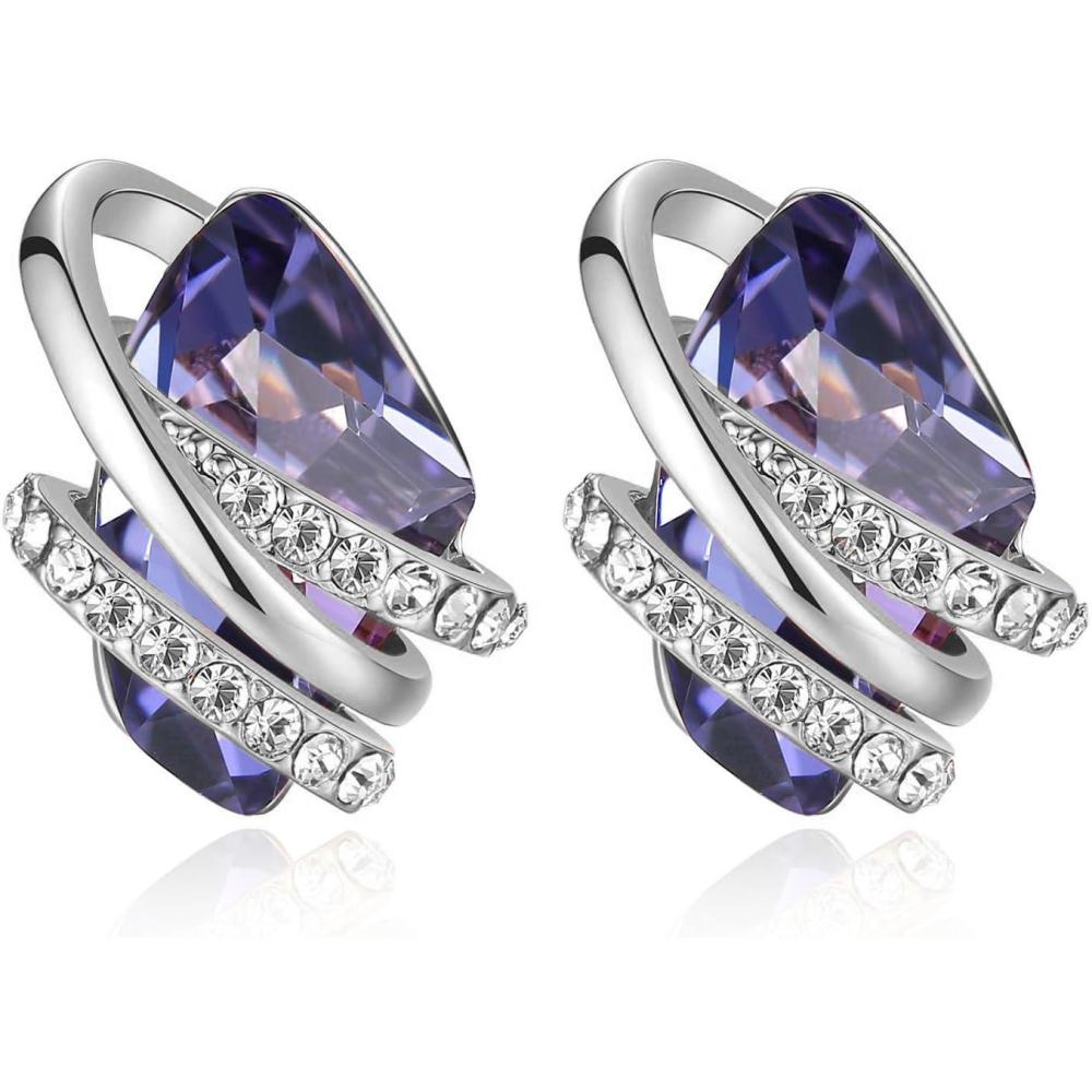 Leafael Wish Stone Stud Earrings with Birthstone Crystals, 18K Rose Gold Plated or Silver-tone(202-February-Tanzanite Purple-Silvertone)