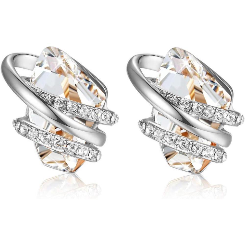Leafael Wish Stone Stud Earrings with Birthstone Crystals, 18K Rose Gold Plated or Silver-tone(204-April-Clear White-Silvertone)