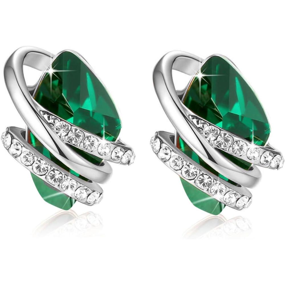 Leafael Wish Stone Stud Earrings with Birthstone Crystals, 18K Rose Gold Plated or Silver-tone(205-May-Emerald Green-Silvertone)