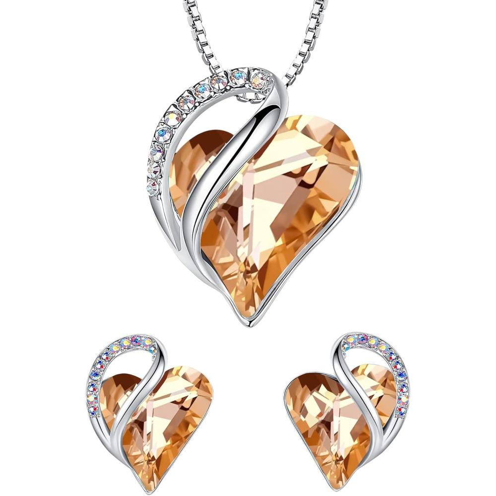 Leafael Infinity Love Heart Necklace and Stud Earrings for Women, Healing Stone for Energy Crystal Jewelry, Silver Tone Bundle Gifts for Women, Carnelian Orange