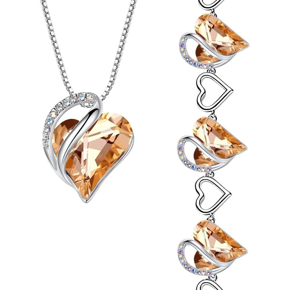 Leafael Infinity Love Heart Necklace and Bracelet for Women, Healing Stone for Energy Crystal Jewelry, Silver Tone Bundle Gifts for Women, Carnelian Orange