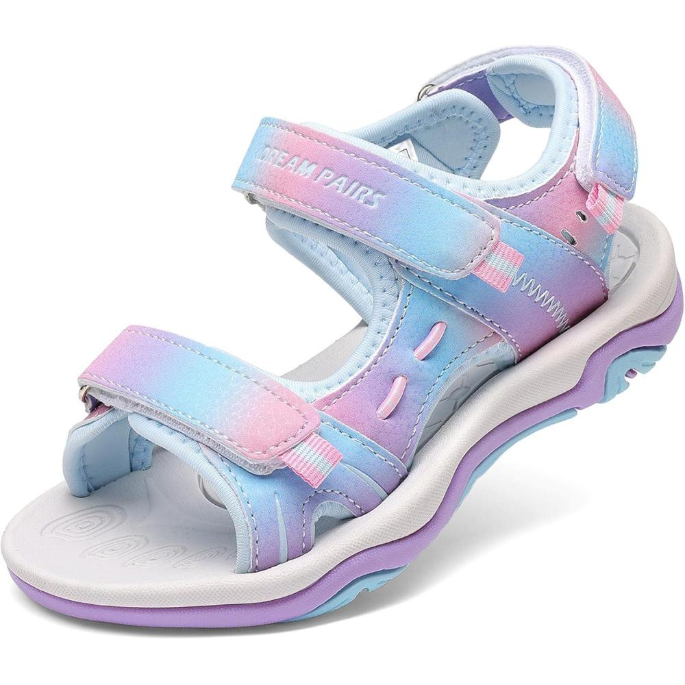 DREAM PAIRS Boys Girls Sandals Kids Athletic Summer Sports Water Shoes for Toddler/Little Kid/Big Kid(Rainbow/Purple)
