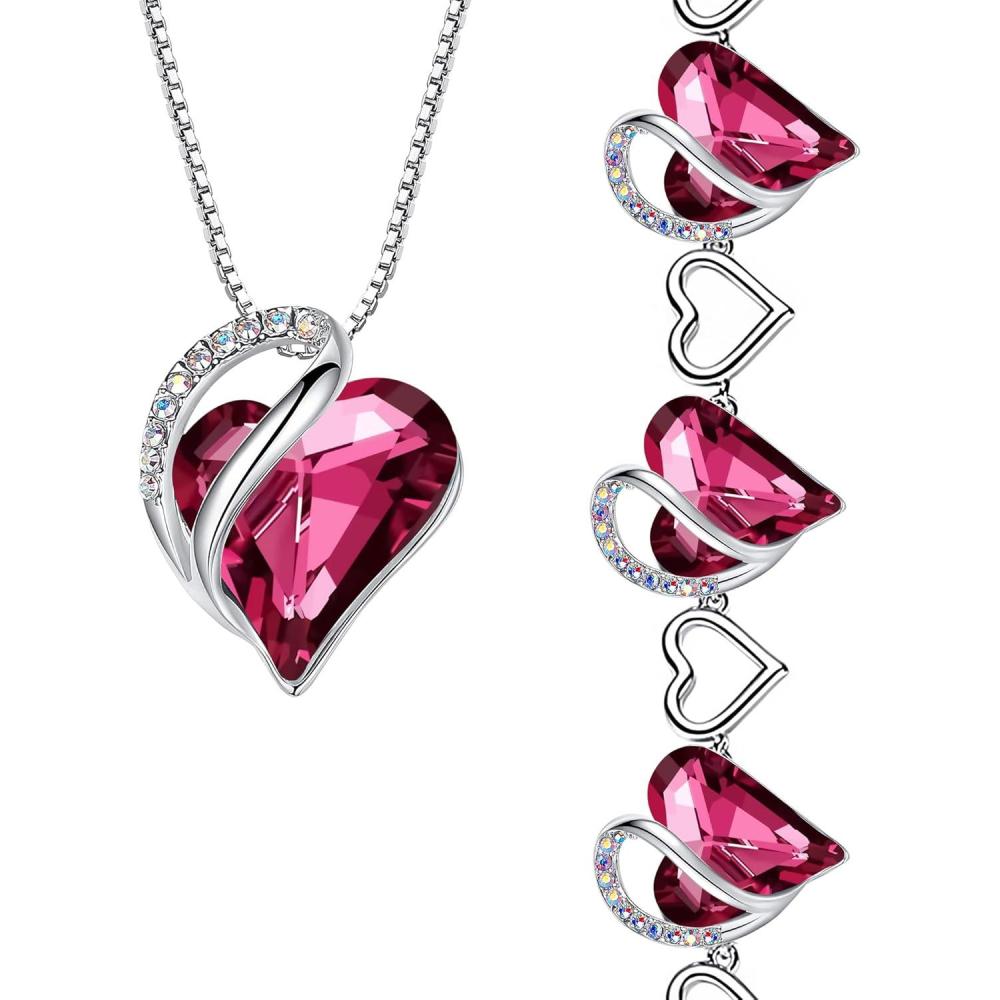 Leafael Infinity Love Heart Necklace and Bracelet for Women, October Birthstone Crystal Jewelry, Silver Tone Bundle Gifts for Women, Tourmaline Pink